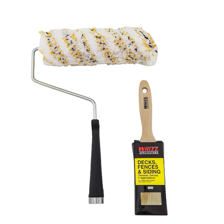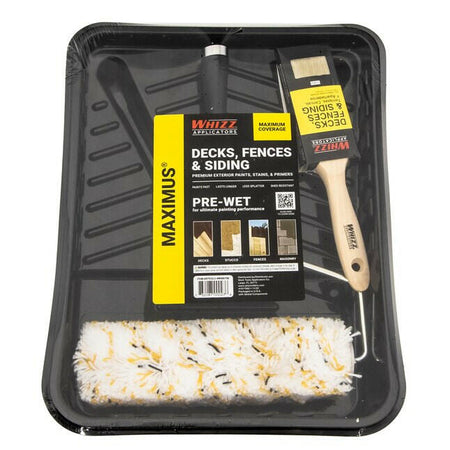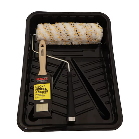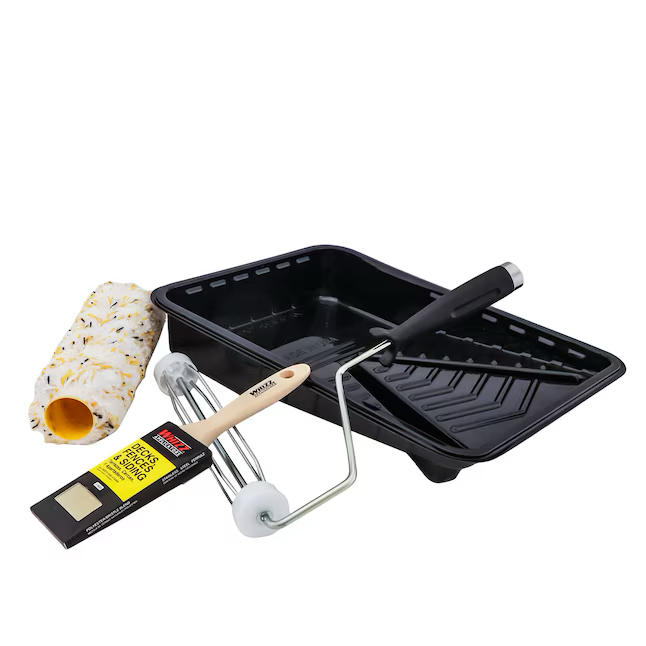 Este kit incluye un pincel plano de 2 pulgadas, un rodillo MAXIMUS® de 3/4 de pulgada, un marco para rodillo de 9 pulgadas y una bandeja de pintura desechable.