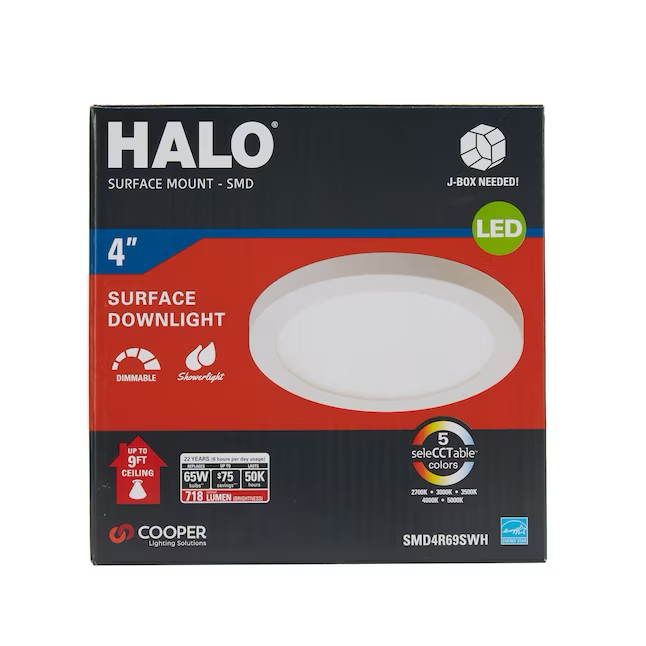 Halo Item # 21223415 | Model # SMD4R69SWHDownlight empotrable LED regulable redondo conmutable HALO blanco de 4 pulgadas y 763 lúmenes