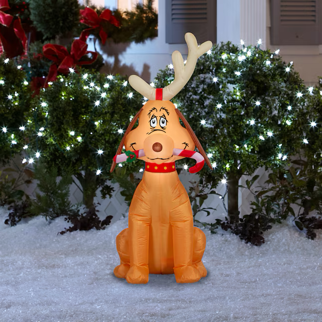 Grinch Item #5967908 | Model #885252Inflable navideño de Dr. Seuss Max con bastón de caramelo y LED de 4 pies de Grinch
