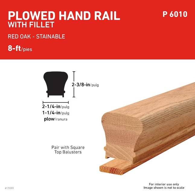 Pasamanos de madera de roble rojo sin terminar de 2,25 x 96 pulgadas