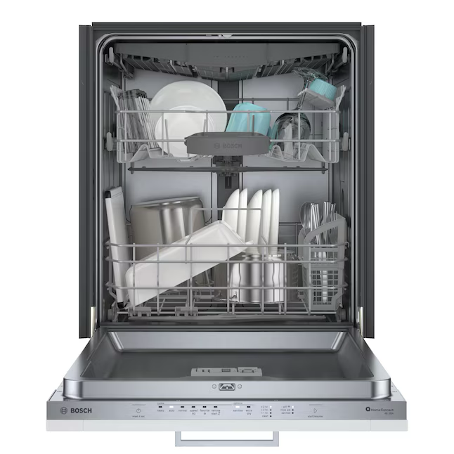 Lavavajillas integrado inteligente de 24 pulgadas con control superior serie 300 de Bosch con tercer estante (preparado para panel personalizado), 46 dBA