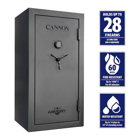 Caja fuerte electrónica con teclado para 24 armas, resistente al agua y al fuego de Cannon Armory
