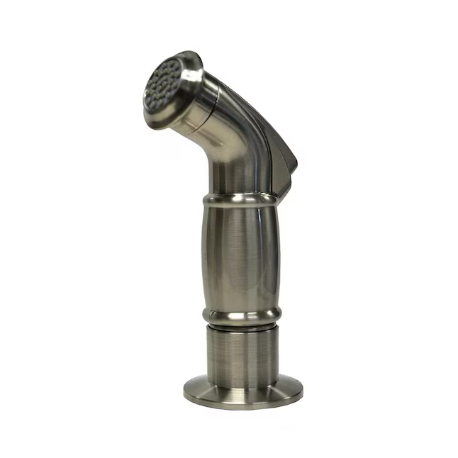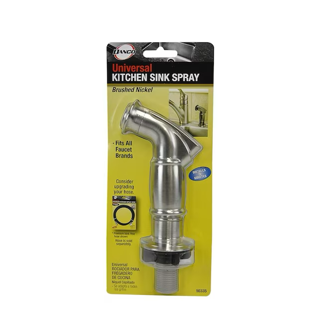 Actualice su spray lateral actual con este aspecto clásico en níquel cepillado. El rociador lateral Danco en níquel cepillado tiene un diseño versátil que se adapta a la mayoría de las marcas de grifos Moen, Delta y Kohler. Proporciona un rociado eléctrico direccional de alta presión con una acción de gatillo aplicada con el pulgar. El pulverizador de alta presión ayuda a limpiar los platos sucios sin tener que fregar demasiado. Ofrece un clip en C patentado para una conexión rápida en segundos. La construcción de plástico proporciona durabilidad y rendimiento confiable a través de los rigores del uso diario. Este rociador lateral de Danco es perfecto para usted y le dará a su cocina una nueva sensación moderna.