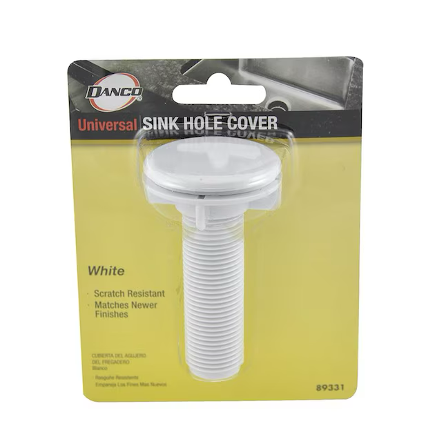 La cubierta para orificios para fregadero de cocina Danco de 1-3/4 pulgadas se utiliza para cubrir orificios antiestéticos en el fregadero cuando el cabezal rociador o el dispensador de jabón no están en uso. Este tapón para orificio del fregadero presenta un diseño de vástago roscado de 3 pulgadas y una cubierta de brida de 1-3/4 pulgadas de diámetro exterior que no requiere herramientas para su instalación (solo se necesita masilla de plomería para crear un sello hermético). El diseño de esta cubierta para orificios para grifos se adapta a la mayoría de los orificios para fregaderos de cocina de tamaño estándar. El elegante acabado complementará sus accesorios existentes y la construcción de plástico duradero es resistente al óxido y proporciona un rendimiento duradero.