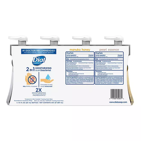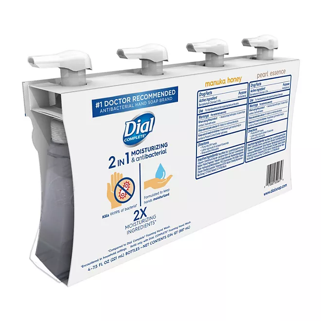 Jabón para manos en espuma Dial Complete®, paquete variado (7.5 onzas líquidas, paquete de 4). Sus fórmulas antibacterianas y 2 en 1 eliminan suavemente las bacterias y la suciedad. Este juego de jabón de manos en espuma Dial Complete® viene con dos agradables aromas de miel de Manuka y esencia de perla. Es ideal para uso en hogares y oficinas.