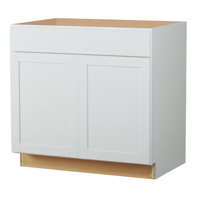 Diamond NOW Arcadia Gabinete completamente ensamblado con base de fregadero blanca de 36 pulgadas de ancho x 35 pulgadas de alto x 23,75 pulgadas de profundidad (estilo de puerta agitadora de panel empotrado)