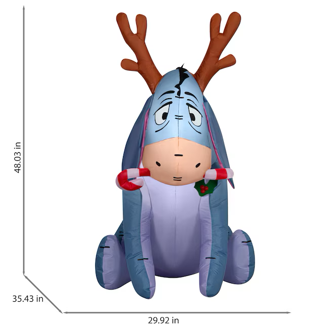 Eeyore inflable Airblown® para interiores y exteriores de 4 pies de alto x 2,6 pies de ancho x 3 pies de profundidad con astas y bastón de caramelo