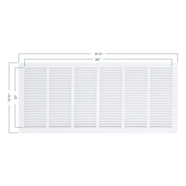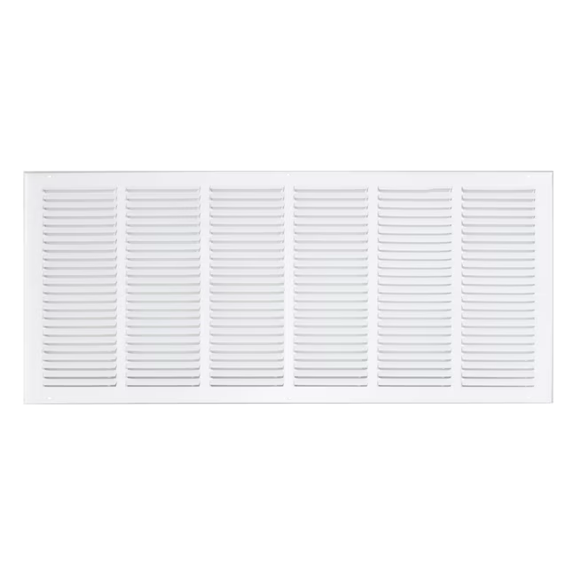 La rejilla de aire de retorno EZ-FLO está diseñada para aberturas en paredes o techos para ayudar a mejorar la circulación del aire extrayendo aire de una habitación. Está hecho de acero resistente con un acabado con recubrimiento en polvo blanco que resiste la descamación y el óxido para un rendimiento más duradero. Se adapta a una abertura de conducto rugosa de 30 pulgadas de ancho por 12 pulgadas de largo. Cuenta con paletas ranuradas que no son ajustables y en una posición fija. Incluye (6) tornillos para una fácil instalación. Es importante verificar el tamaño de la abertura del conducto antes de comprar un conducto o una cubierta de ventilación.