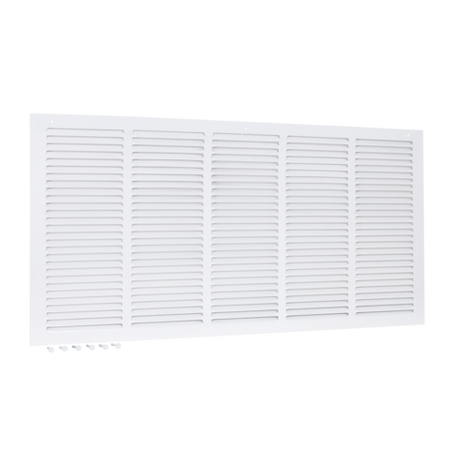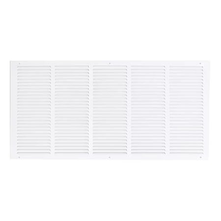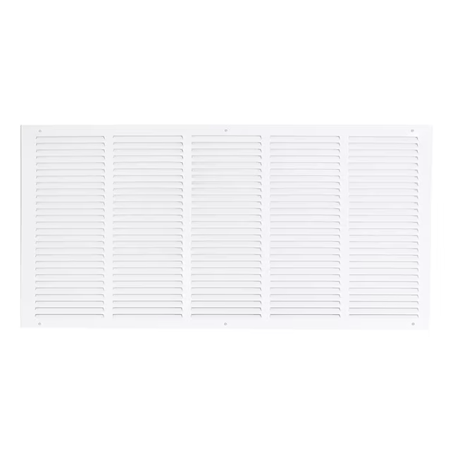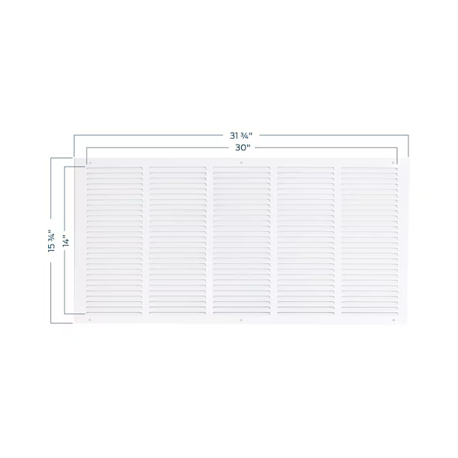 La rejilla de aire de retorno EZ-FLO está diseñada para aberturas en paredes o techos para ayudar a mejorar la circulación del aire extrayendo aire de una habitación. Está hecho de acero resistente con un acabado con recubrimiento en polvo blanco que resiste la descamación y el óxido para un rendimiento más duradero. Se adapta a una abertura de conducto rugosa de 30 pulgadas de ancho por 14 pulgadas de largo. Cuenta con paletas ranuradas que no son ajustables y en una posición fija. Incluye (6) tornillos para una fácil instalación. Es importante verificar el tamaño de la abertura del conducto antes de comprar un conducto o una cubierta de ventilación.