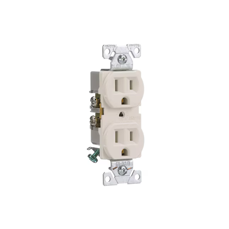 El receptáculo dúplex de grado comercial con acabado almendra claro ofrece una capacidad de 20 A y 125 V diseñado para brindar una experiencia de usuario confiable y duradera al tiempo que aumenta la velocidad y la eficiencia de la instalación.