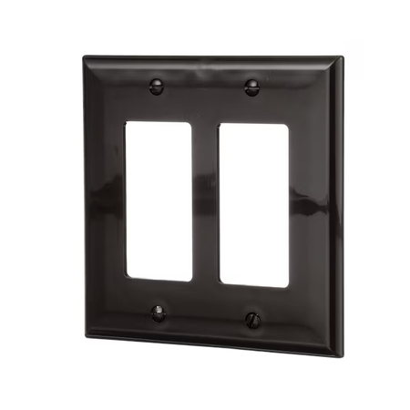 Placa de pared Decorator de dos unidades de tamaño mediano para uso con receptáculo dúplex estilo Decorator, GFCI o interruptor Decorator.
