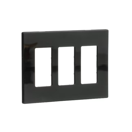 Placa de pared Decorator de tres unidades, de tamaño mediano, sin tornillos, para uso con receptáculo dúplex estilo Decorator, GFCI o interruptor Decorator.