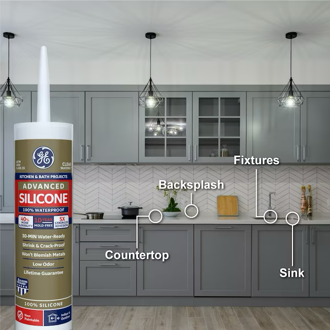 • Excelente para sellar una amplia gama de proyectos de cocina y baño, como fregaderos, bañeras, duchas, accesorios, encimeras, salpicaderos y aplicaciones de plomería adicionales.