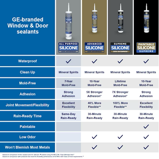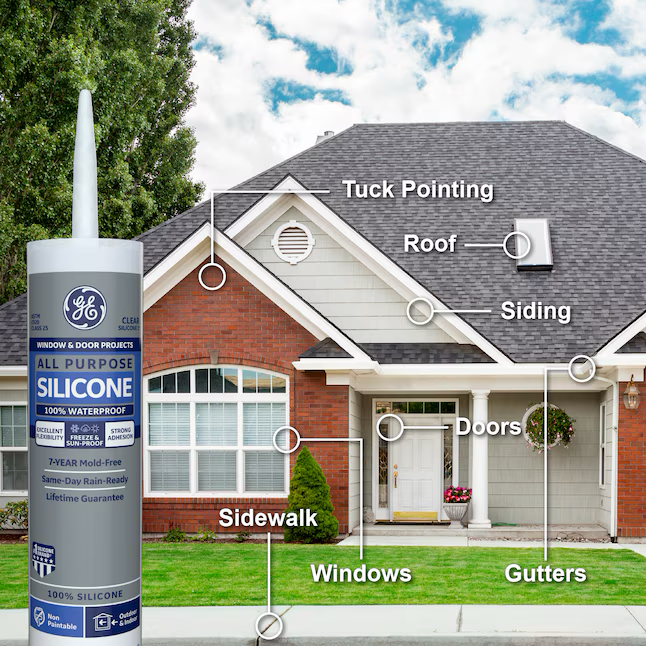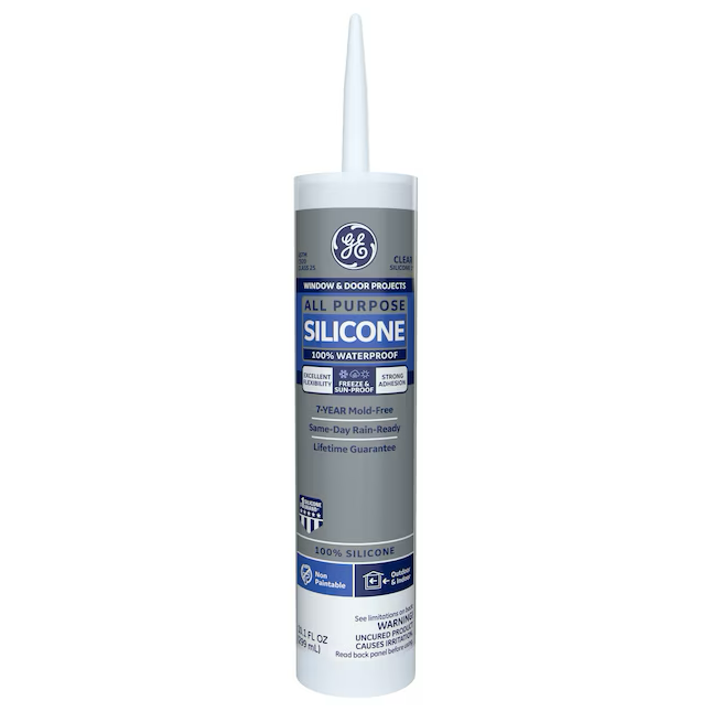 GE Silicone 1 Masilla de silicona transparente para todo uso, ventanas, puertas y exteriores, 10.1 oz