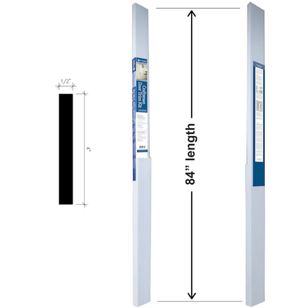 - Dimensions Longitud real ensamblada (pies) 7 Grosor real (pulgadas) 0,5 Ancho real ensamblado (pulgadas) 4 Se adapta al tamaño de puerta común. 36 x 80 pulgadas