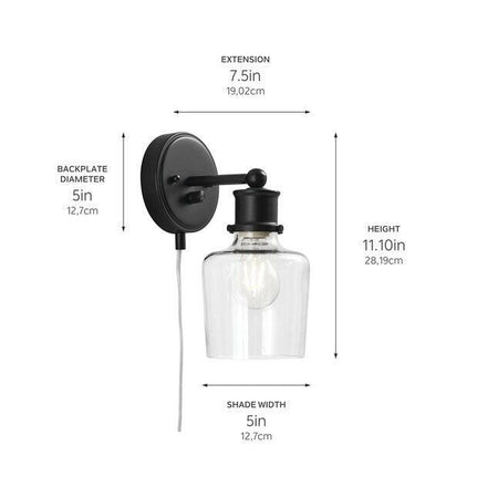 Kichler Helen Aplique de pared negro mate con 1 luz de 5 pulgadas de ancho