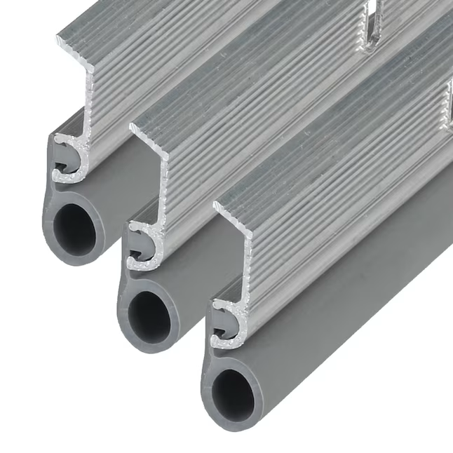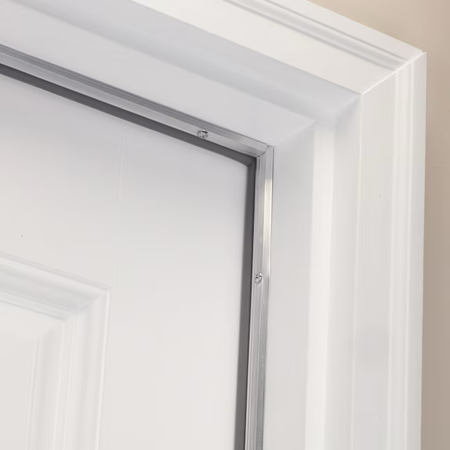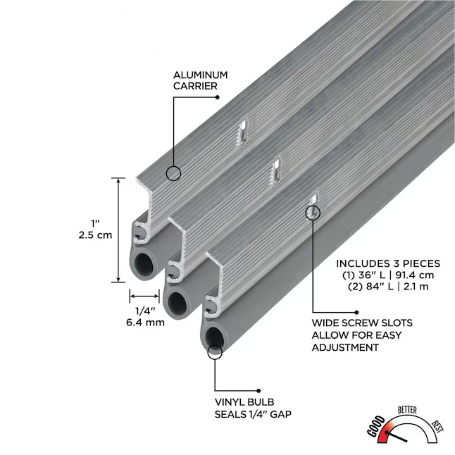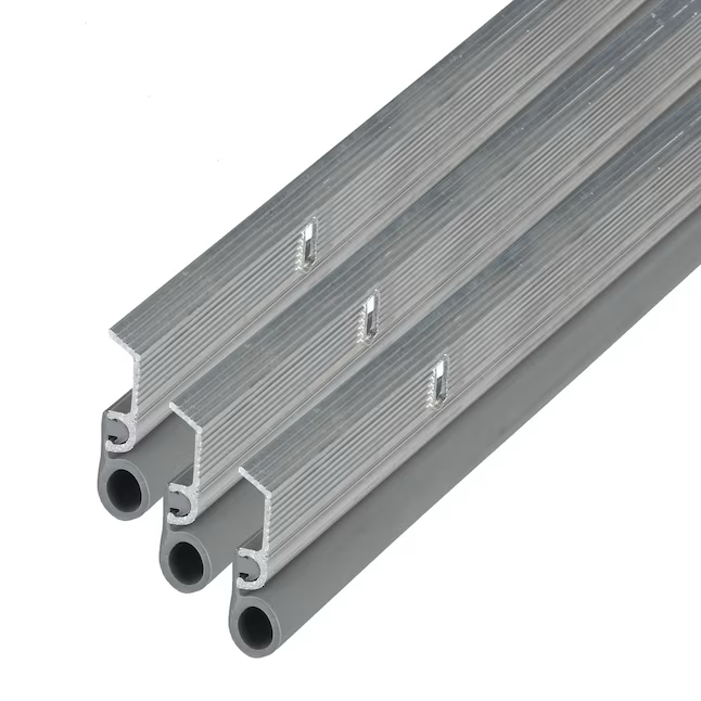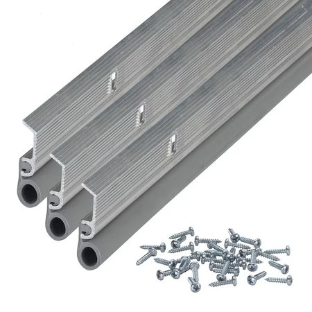 El kit de sellos para puertas laterales y superiores con clavos de aluminio y vinilo MD protege contra corrientes de aire, humedad, polvo e insectos. Ahorre energía sellando la parte superior y los lados de su puerta y evitando que se escape el calor o el aire acondicionado. Este kit viene con tres piezas, dos piezas de 84 pulgadas para los lados verticales del marco de la puerta y una pieza de 36 pulgadas para la parte superior del marco de la puerta. Todo el hardware necesario para la instalación está incluido. Antes de la instalación, corte a la longitud deseada con una sierra para metales y asegúrese de que la bombilla de vinilo esté comprimida contra la puerta para crear un sello adecuado. Simplemente clave las tres piezas en el marco de la puerta.