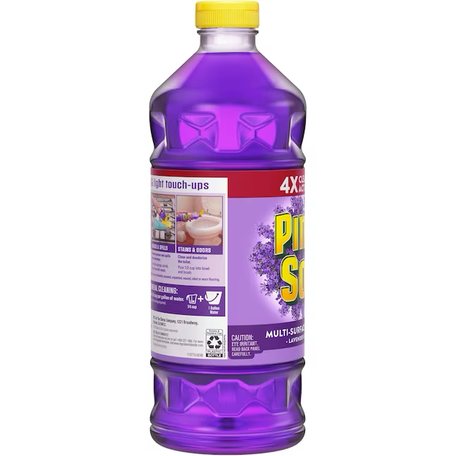 El limpiador multiusos Pine-Sol le brinda una acción de limpieza 4 veces mayor eliminando la suciedad, la mugre y la grasa, y desodorizando su hogar con un aroma excelente y duradero. Esta fórmula limpiadora concentrada puede afrontar cualquier desafío; simplemente mezcle Pine-Sol con agua en diferentes concentraciones para ajustar su poder de limpieza cada vez, a diferencia de los limpiadores premezclados. El limpiador multiusos Pine-Sol es seguro de usar en la mayoría de las superficies duras no porosas, incluidas madera dura terminada, baldosas de cerámica, linóleo y plástico, y no deja residuos pegajosos. Con el poder de Pine-Sol de su lado, solo tendrá que limpiar una vez para hacer bien el trabajo.