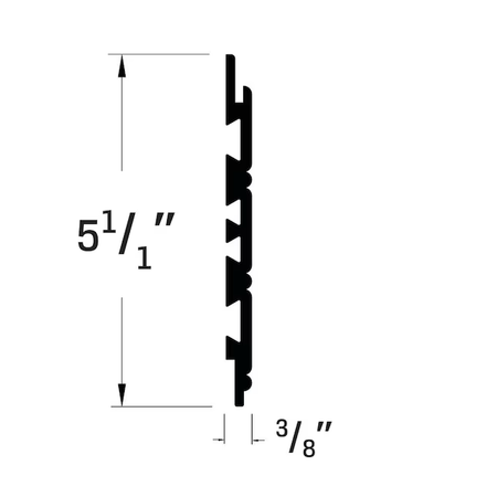 Cada pieza mide 3/8 de pulgada de espesor x 5-1/2 de ancho x 8 pies de largo y cubre 3,65 pies cuadrados.