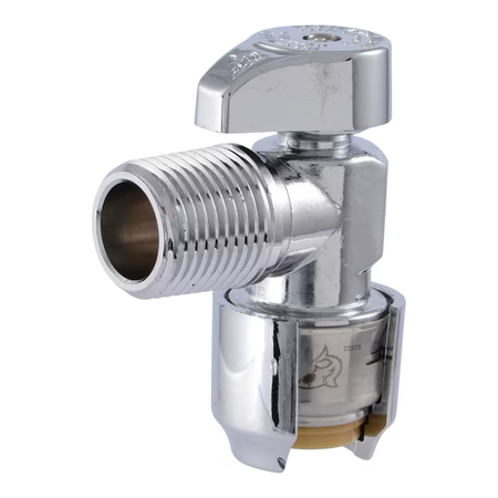 Válvula angular de latón SharkBite de 1/2 pulg. con conexión a presión y cierre de un cuarto de vuelta de 1/2 pulg. MIP