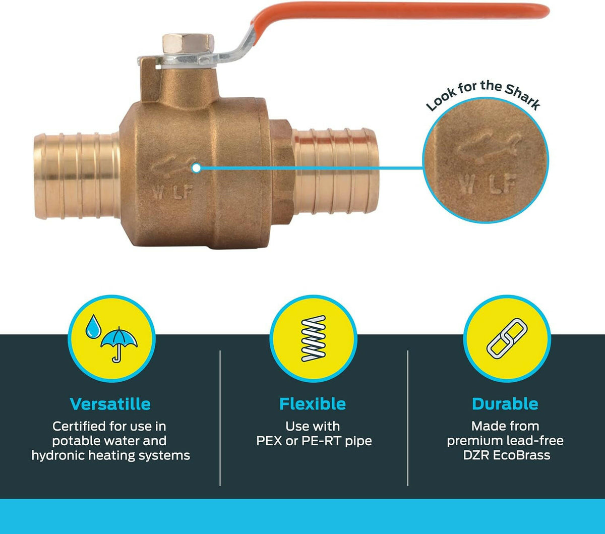 Válvula de bola engarzada de latón SharkBite de 1 pulg. x 1 pulg.