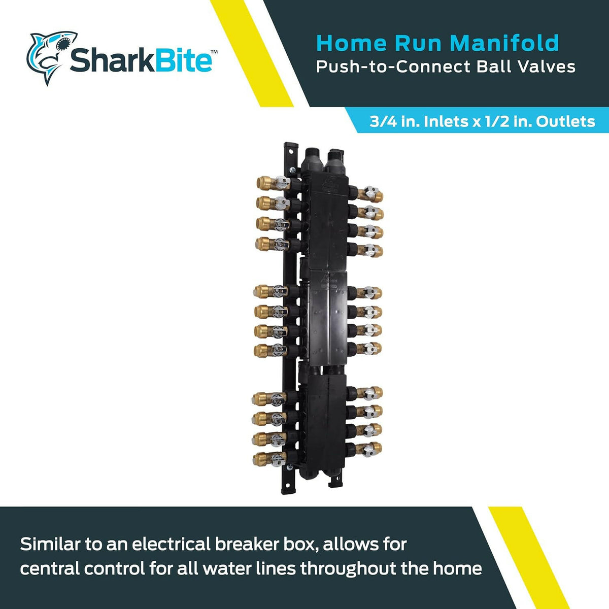 SharkBite Colector Home Run de 24 puertos Entrada MNPT de 3/4 pulgadas x 1/2 pulgada