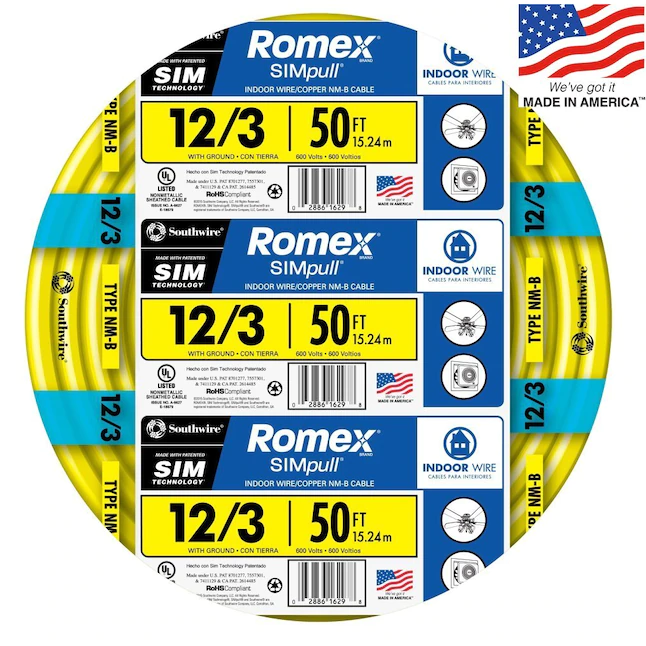 Southwire Romex SIMpull 50 pies 12 / 3 Cable sólido no metálico para interiores