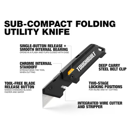 Cuchillo multiusos plegable TOUGHBUILT subcompacto de 3/4 pulgadas y 1 hoja