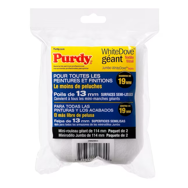 Purdy Item # 71223366 | Model # 14G624013Purdy WhiteDove, paquete de 2 cubiertas para rodillo de pintura de fibra acrílica tejida de 4,5 x 1/2 pulgadas