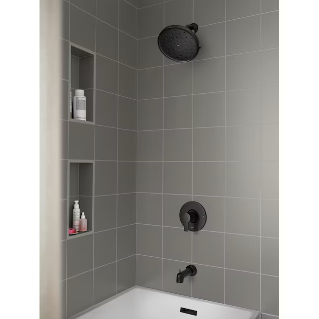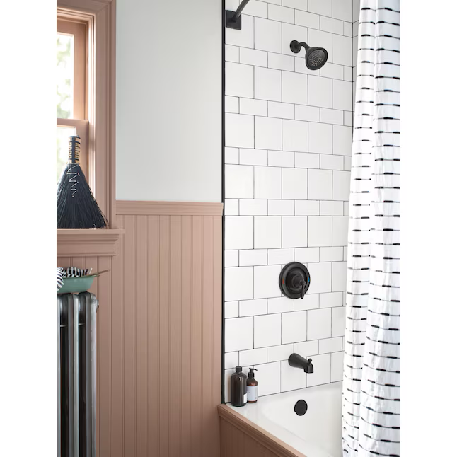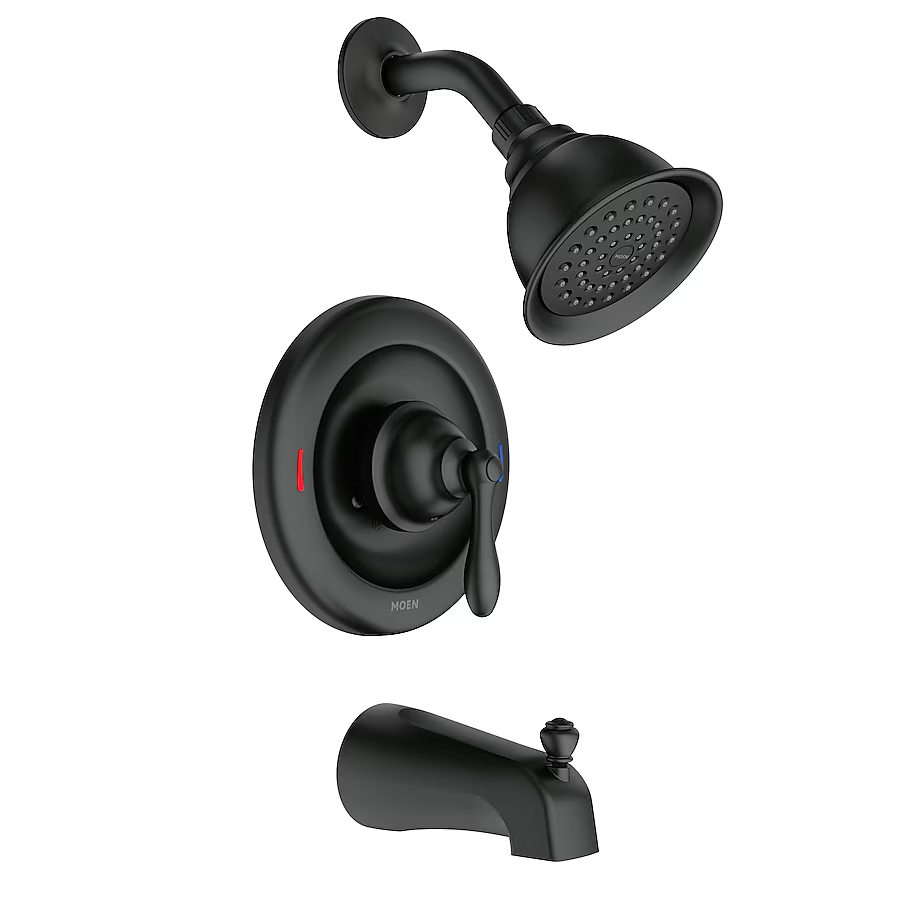 Moen Item # 71223455 | Model # 82496EPBLGrifo monomando para bañera y ducha redondo de una función, color negro mate, Moen Caldwell, válvula incluida