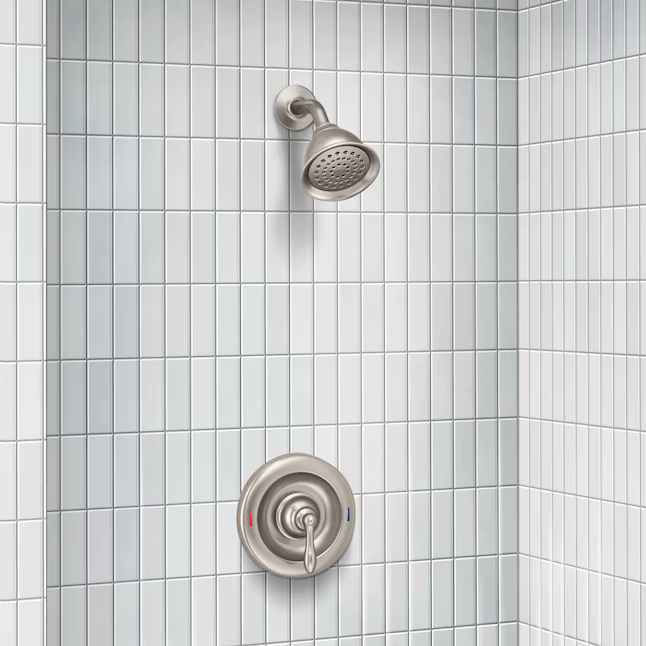 Moen Item # 71223456 | Model # 82496EPSRNGrifo monomando para bañera y ducha de níquel cepillado Moen Caldwell Spot Resist con función única y válvula incluida