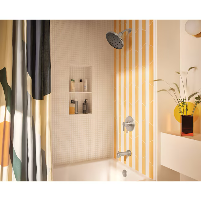Moen Item # 71223453 | Model # 82137Grifo para bañera y ducha redondo de una manija y múltiples cabezales Moen Graeden Magnetix cromado con válvula incluida