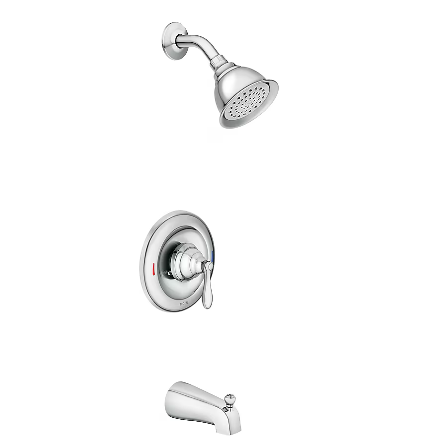 Moen Item # 71223454 | Model # 82496EPGrifo para bañera y ducha redondo de una sola función, cromado, de Moen Caldwell, con válvula incluida