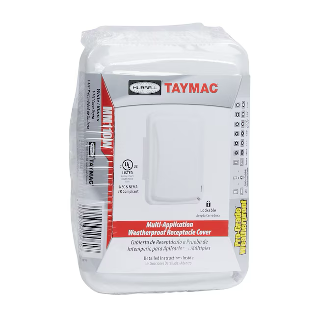 Hubbell Item # 71223611 | Model # MM110WCubierta para caja eléctrica de plástico resistente a la intemperie, rectangular, blanca, de 1 unidad, Hubbell TayMac
