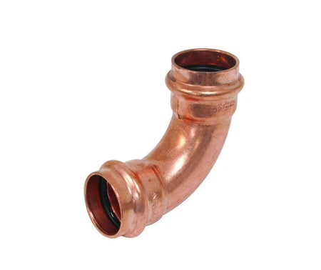 El codo de 90 grados de presión de cobre x presión de prensa de 1-1/4 pulgadas x 1-1/4 pulgadas cuenta con una junta tórica de EPDM de alta calidad para crear un sello hermético y sin fugas. Fácil de usar, simplemente aplique presión con una herramienta de presión para apretar la junta tórica en el tubo, asegurando un sello limpio y hermético en segundos sin llama, soldadura ni fundente. Las conexiones se pueden realizar en condiciones húmedas o secas, lo que reduce el tiempo de inactividad del proyecto. El acoplamiento es compatible con todas las principales herramientas de prensa hidráulica y está certificado por NSF y no contiene plomo.