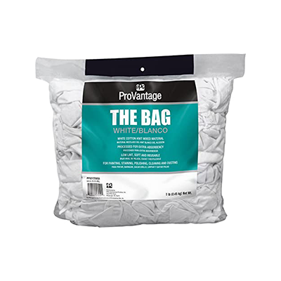 Esta bolsa de trapos blancos ProVantage de 1 libra de PPG está diseñada para brindar durabilidad duradera incluso en las aplicaciones más difíciles. Estos trapos están hechos de algodón para una buena absorción y no destiñen para lavarlos a máquina. Sin mencionar que el peso del material ofrece una excelente resistencia para un rendimiento sin pelusas.
