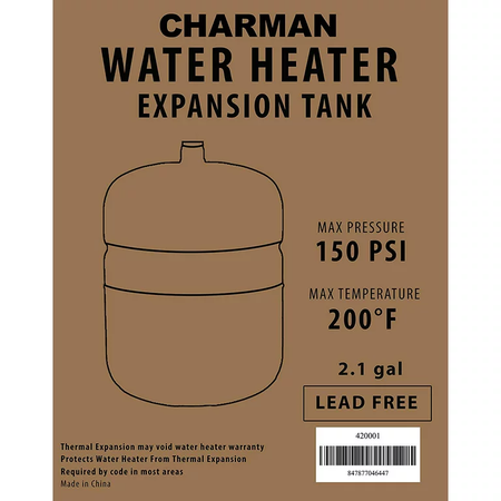 El tanque de expansión para desbordamiento del calentador funciona en calentadores de hasta 80 galones