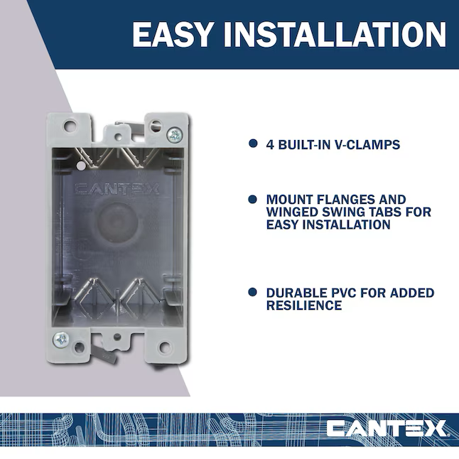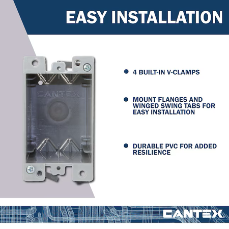 CANTEX Caja eléctrica de interruptor/tomacorriente de trabajo antiguo de PVC de 1 unidad