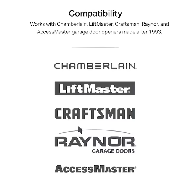Solo funciona con abridores de puertas de garaje Chamberlain, LiftMaster, Craftsman, Raynor y AccessMaster fabricados después de 1993.