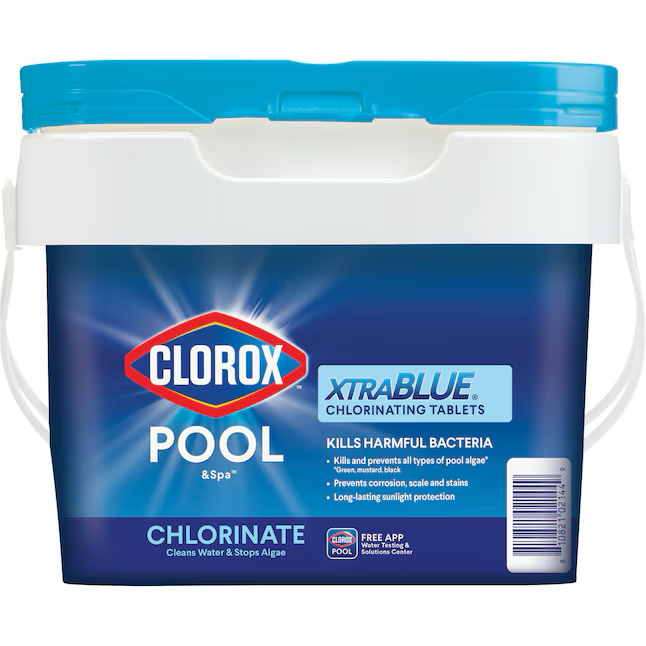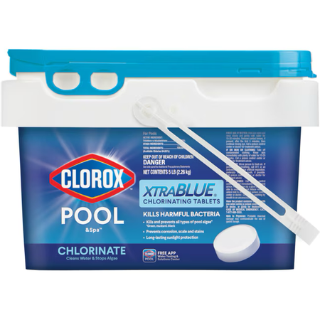 Las tabletas clorantes Clorox® Pool&Spa™ XtraBlue® hacen un esfuerzo adicional para ayudar a mantener el agua saludable de la piscina. Estas tabletas multifuncionales trabajan arduamente para mantener el agua limpia de bacterias y algas antiestéticas. Cada tableta se disuelve lentamente y contiene estabilizador para una limpieza duradera. La fórmula XtraBlue® protege sus superficies de las incrustaciones y la corrosión e incluye acondicionadores que hacen que el agua se sienta suave como la seda. Mantener entre 1 y 4 ppm de cloro libre es fundamental para mantener el agua limpia y apta para nadar. Usar semanalmente en skimmers, comederos o flotadores. Aplique siempre los productos químicos según las instrucciones de la etiqueta. La circulación del agua de la piscina al aplicar productos químicos ayuda a dispersar los productos químicos por toda la piscina para una cobertura máxima.