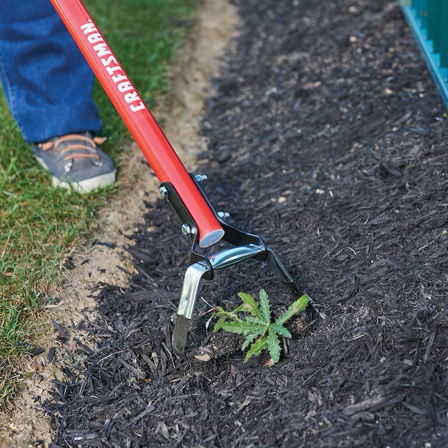 • El mango largo de fibra de vidrio ayuda a eliminar las malas hierbas mientras está de pie.