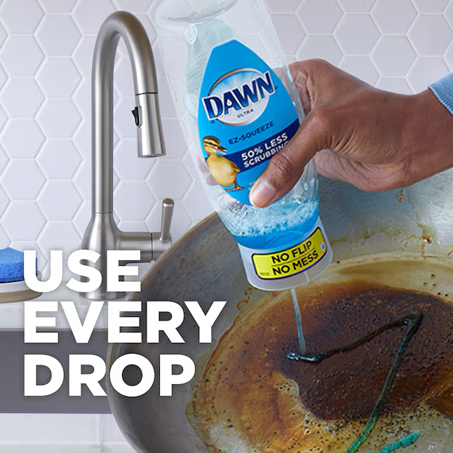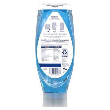 Nueva botella EZ-Squeeze, no se voltea ni se ensucia. La botella EZ-Squeeze hace que lavar los platos sea rápido y fácil. Además, la potente fórmula constituye la forma más sencilla de afrontar la limpieza más grasosa. Desde el primer apretón hasta el último, nunca tendrás que preocuparte por desperdiciar una gota con la nueva botella EZ-Squeeze. No importa lo que tengas cocinando en la cocina, este jabón líquido para platos dejará tus platos impecablemente limpios en todo momento. Obtenga su mejor limpieza y sea el héroe de la cocina con el poder limpiador de grasa de este jabón líquido para platos. Con un 50 % menos de fregado, este jabón líquido para platos funciona más para que puedas volver a pasar tiempo de calidad con tu familia. Este jabón líquido para platos se puede usar incluso para limpiar artículos más allá del fregadero de la cocina. Utilice este líquido para lavar platos para eliminar la grasa y la suciedad de las superficies externas del automóvil y de la cubierta exterior de una parrilla de gas. Este jabón líquido para lavar platos es resistente a la grasa, pero suave. Es tan suave que este líquido para lavar platos ayuda a salvar a la vida silvestre rescatada de los derrames de petróleo.