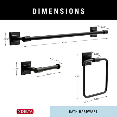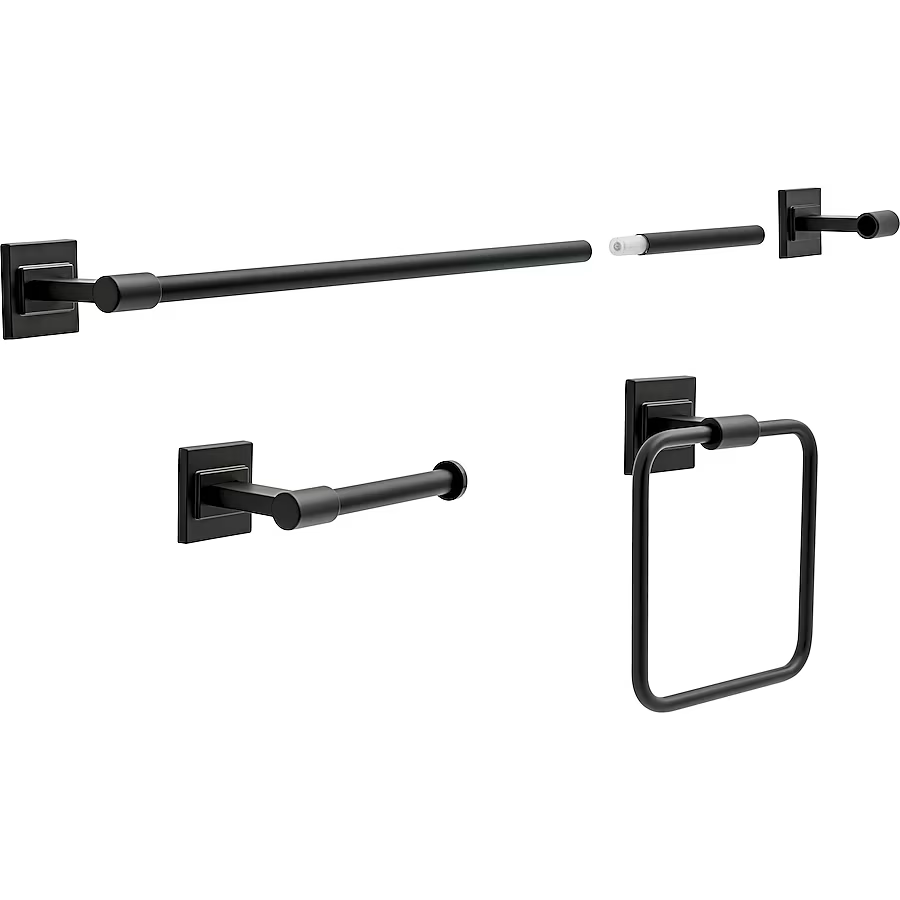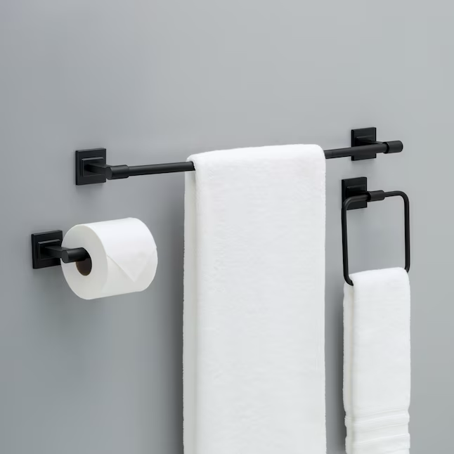 Juego de accesorios decorativos para baño de 3 piezas Mclaren de Delta en negro mate con barra para toallas, soporte para papel higiénico y aro para toallas
