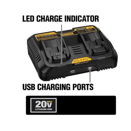 Carga simultáneamente (2) baterías DEWALT12V - 20V MAX Li-Ion
