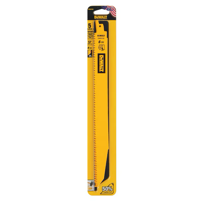 Hoja de sierra recíproca de demolición DEWALT bimetálica de 12 pulgadas y 6 Tpi (paquete de 5)