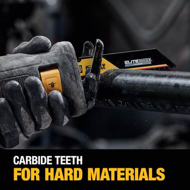 Las hojas de sierra alternativa con punta de carburo para corte de metales DEWALT ELITE SERIES TM duran hasta un 25% más que Diablo® y cuentan con carburos soldados con precisión a lo largo del filo para resistir el corte de materiales duros como hierro fundido y acero inoxidable. Los dientes con punta de carburo están rectificados para cortar eficientemente metales gruesos. El perfil alto de la hoja está diseñado para proporcionar cortes rectos en aplicaciones de corte de metales pesados.