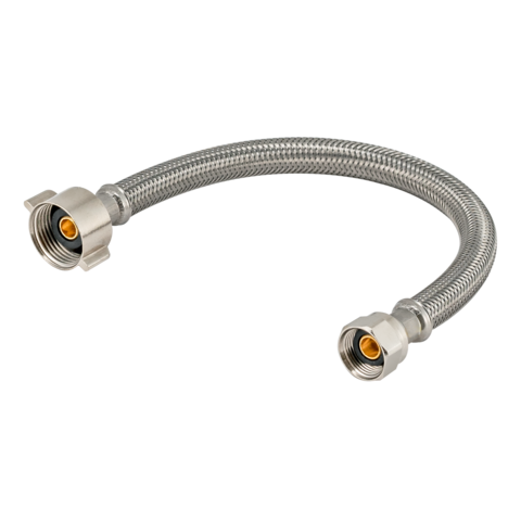 El conector para inodoro Steel-Flex de Eastman® cuenta con una conexión de tuerca de bola de compresión de 1/2 pulgada x 7/8 pulgada. Está construido para durar con un núcleo de PVC no tóxico de alta calidad, un refuerzo de nailon trenzado multifilamento, una cubierta exterior de vinilo transparente y un exterior de acero inoxidable trenzado de grado 304 diseñado para evitar que se doble y se doble. Este conector seguro de línea de suministro de inodoro está equipado con púas de latón de flujo total y una tuerca esférica de latón macizo cromado. Este conector para inodoro de serie profesional mide 9 pulgadas de largo. El acero inoxidable trenzado flexible permite una fácil instalación en espacios reducidos. Aprobado por la UPC. Certificado NSF y CSA. Cumple con la ley sin plomo.