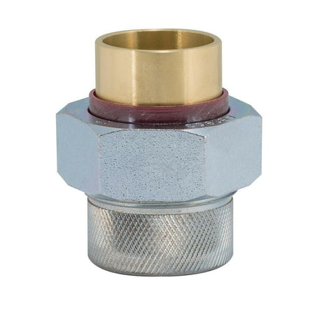 La unión dieléctrica Eastman está construida con un latón de alta durabilidad para ayudar a minimizar la corrosión. La unión está diseñada para la transición entre tuberías de acero y cobre. Equipado con una tubería de hierro (FIP) hembra de 3/4 de pulgada x conexión de soldadura de 3/4 de pulgada. La conexión IPS y la tuerca están construidas de acero. El PSI máximo es de 250 y tiene una velocidad máxima de 180 grados Fahrenheit. La unión incluye una junta que es de caucho de silicona y un inserto de nylon. La unión dieléctrica funciona bien con cobre, latón y acero. Cumple con los estándares de la industria sin plomo.