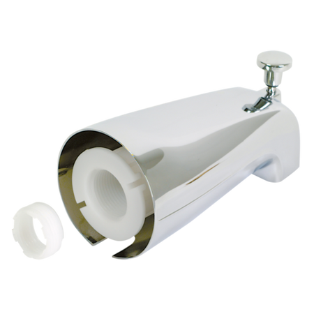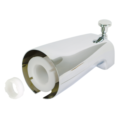 La boquilla desviadora EZ-FLO está fabricada con zinc de alta resistencia para mayor resistencia y durabilidad. El caño tiene un acabado cromado que resiste la corrosión y completa el aspecto de la decoración de su bañera. El pico, que mide 5-3/4 pulgadas de largo, presenta un diseño universal con un IPS de 1/2 pulgada o 3/4 pulgada y un desviador en la punta. El pico desviador se ajusta hasta 1 pulgada. Diseñado para usar con aplicaciones de tuberías de hierro que se extienden entre 3/4 de pulgada y 1-1/4 de pulgada desde la pared.