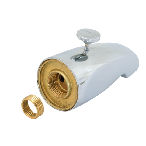 La boquilla desviadora EZ-FLO está fabricada con latón resistente que proporciona resistencia y durabilidad. El caño tiene un acabado cromado que resiste la corrosión y completa el aspecto de la decoración de su bañera. El pico está equipado con un casquillo frontal reductor IPS de 3/4 a 1/2 pulgada. El pico, que mide 5-1/4 pulgadas de largo, presenta un diseño universal con una plancha IPS de 3/4 de pulgada y un desviador en el cuerpo.